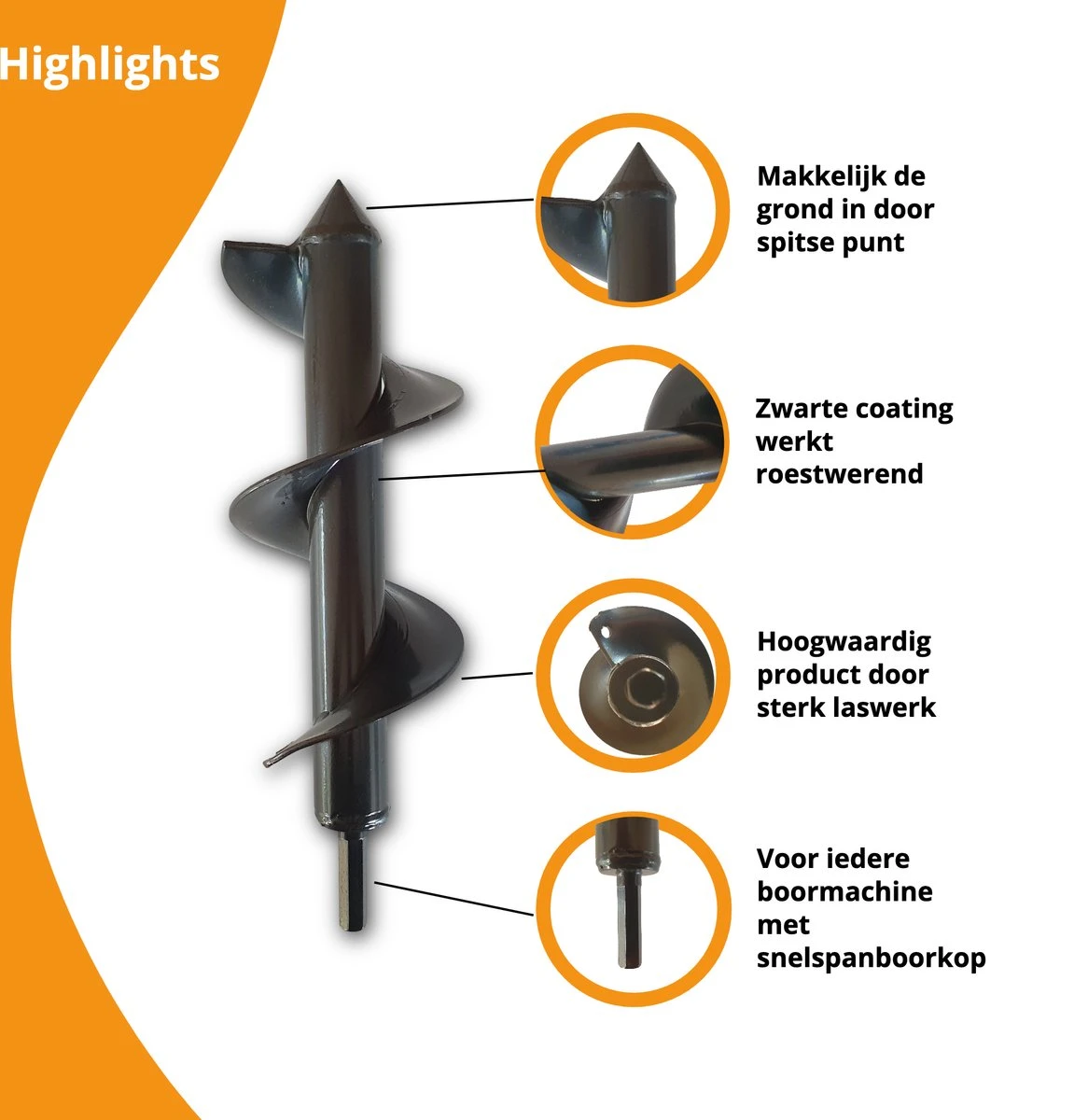 Grondboor Voor Boormachine – 8×25 Cm – Zwart